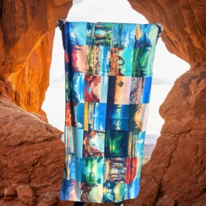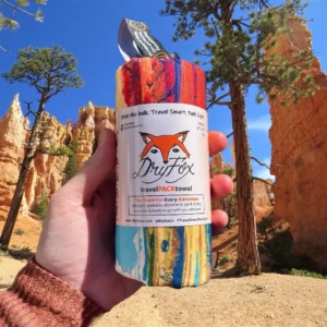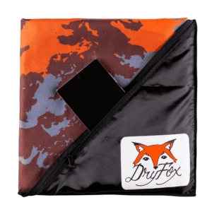 Our Beach-size towels are the only travel towels that self-stow — no extra bag needed. Each one folds right into the built-in DryFoxCo Stow Pouch attached at the corner.