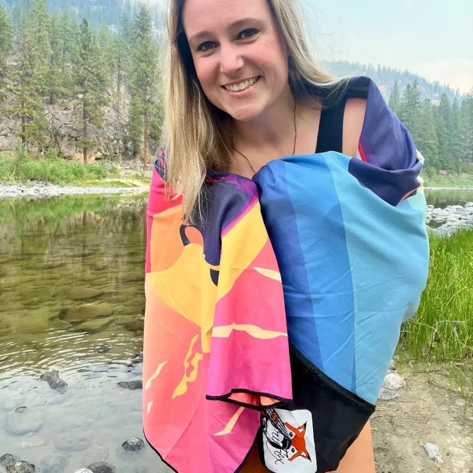 All DryFoxCo Adventure Towels are made from a microfiber blend containing 85% rPET, post-consumer recycled plastics like water bottles, and 15% nylon. This combination allows for maximum absorption, increases the towel’s ability to dry quickly, and keeps our towels lightweight. Our primary goal was to create a greener, eco-friendly product that was safe for our Earth and our consumers.