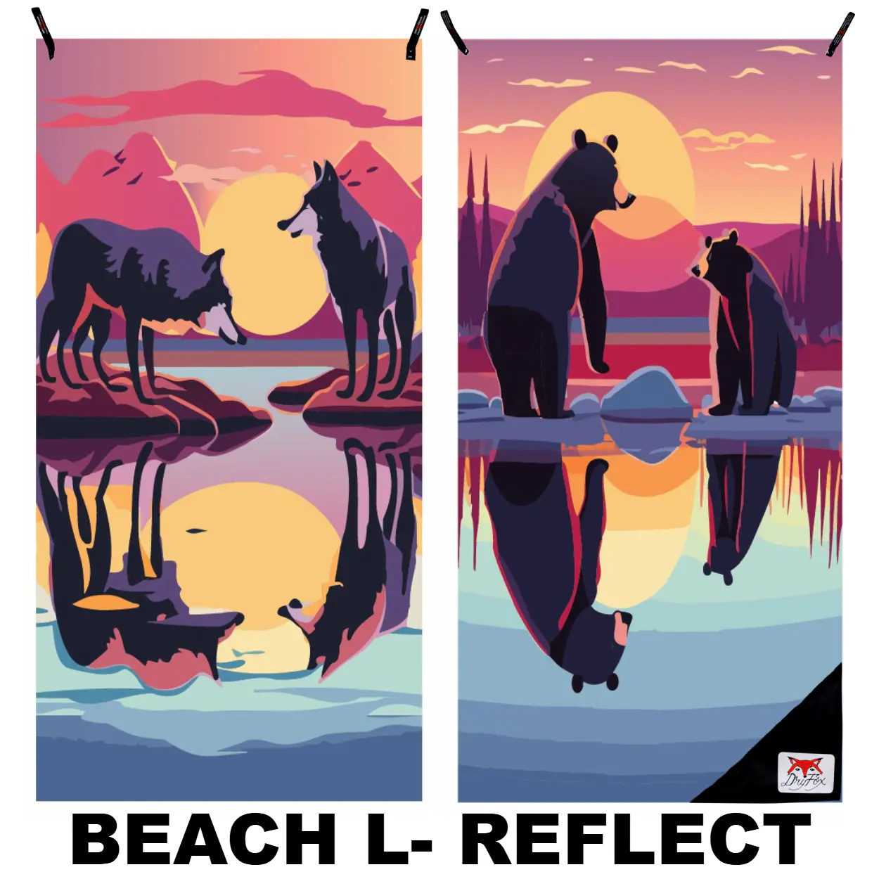 (8) L Beach-Size Adventure Towel: 30" x 60", 9 oz, DryFoxCo exclusive attached Carry Pouch, DryFoxCo exclusive built-on Zip Compartment for your valuables, 2 snap loops.